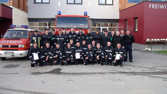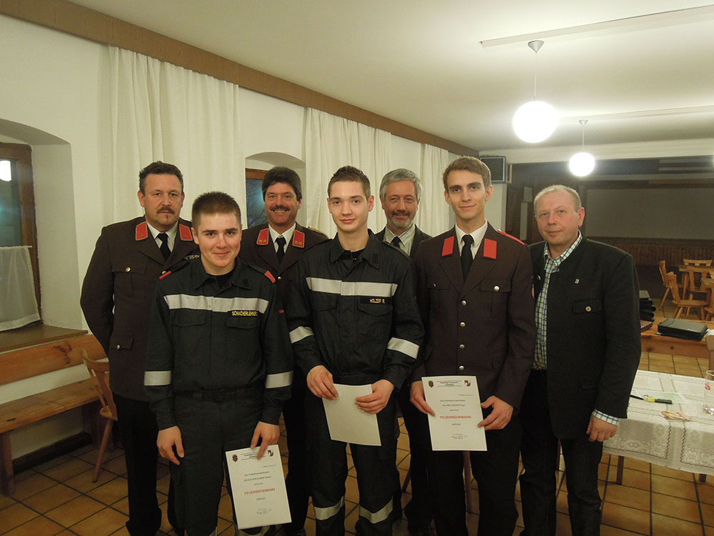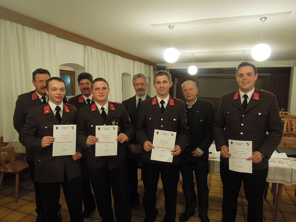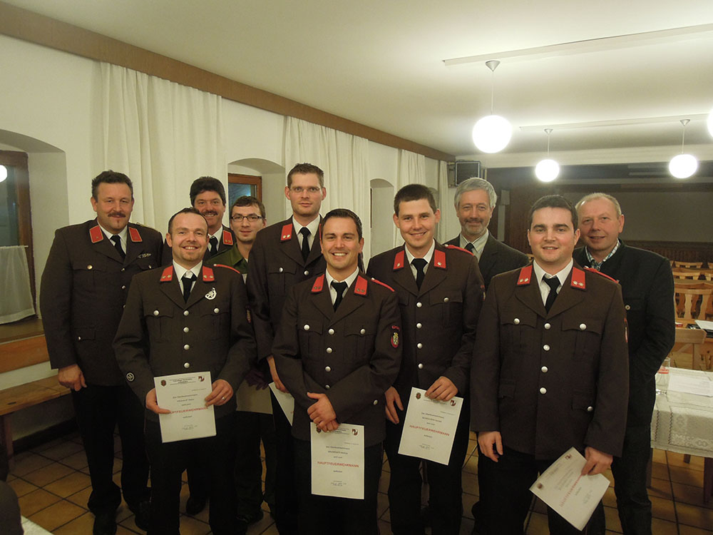 Beförderung zum Hauptfeuerwehrmann: Markus Brandner, Thomas Brandner, Jakob Dorfmayr, Roman Dorfmayr, Heinz Frühauf, Kurt Hinterbichler, Gerald Monschein, Martin Putz, Johannes Schnetzinger, Gerhard Stiegler