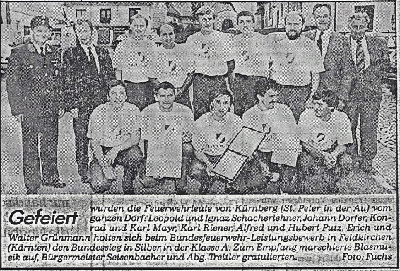 Im September holte sich die Bewerbsgruppe beim Bundesfeuerwehr-leistungsbewerb in Feldkirchen (Kärnten) den Bundessieg in Silber in der Klasse „A“.